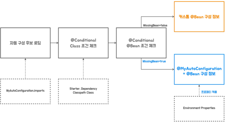 Environment 추상화와 프로퍼티 지금까지 자동구성에 대한 과정을 살펴봤다. 자동 구성에 의해 만들어지는 빈 오브젝트에는 보통 기본값이 들어가있다. ex) port: 8080 cf) Environment 인터페이스 스프링 애플리케이션의 환경 설정과 관련된 정보를 제공한다. 프로퍼티 값을 가져오거나 환경 변수 값을 조회하는 메서드를 제공한다. getProperty() 스프링은 단일화된 방식으로 접근할 수 있도록 설계되어있다. 1) standardEnviroment System propertyies System Enviroment Variables 2) standardServletEnvironment: 웹 환경일 때 사용 가능 ServletConfig Parameters servletcontext Pa..