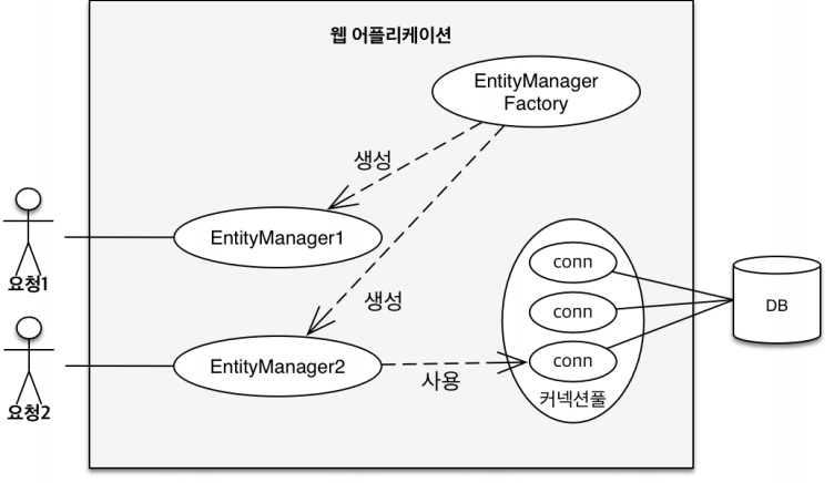 3.1 영속성 컨텍스트 (1) JPA에서 가장 중요한 것은? (1) 객체와 관계형 데이터베이스 매핑하기(ORM) (2) 영속성 컨텍스트(Persistence Context): entity를 영구 저장하는 환경이라는 뜻이다. 논리적인 개념이며 눈에 보이지 않는다. EntityManager를 통해 영속성 컨텍스트에 접근한다. ex) Entity.Manager.persist(entity) - persist 메서드는 데이터베이스가 아니라 엔티티를 사실 Persist Context에 저장하는 것이다. 아래 그림: 고객이 요청할 때마다 Entity manager를 생성한다. manager는 내부적으로 데이터베이스 커넥션을 사용해서 DB를 사용한다. 엔티티의 생명 주기 비영속(new / transient): 영속성 ..